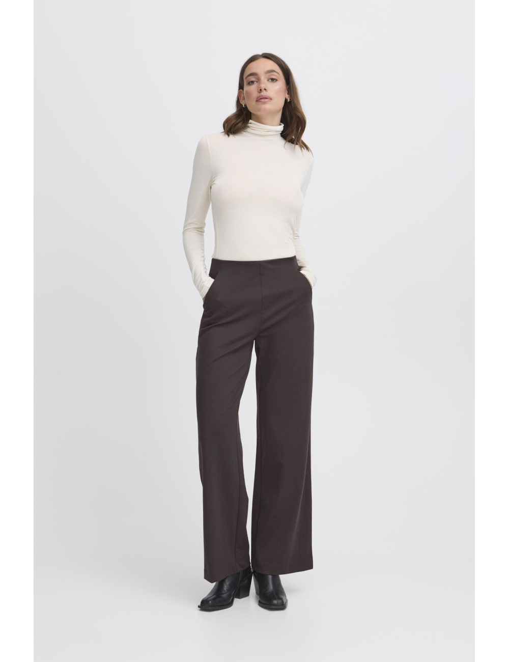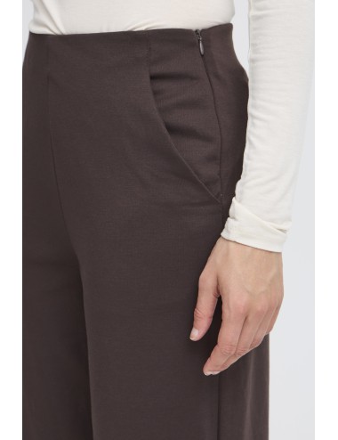 Pantalón de vestir de pierna ancha con cierre de cremallera en un costado. Elástico en el interior de la cintura. Bolsillos delanteros. Falsos bolsillos traseros. 74% poliéster reciclado, 22% viscosa, 4% elastano.